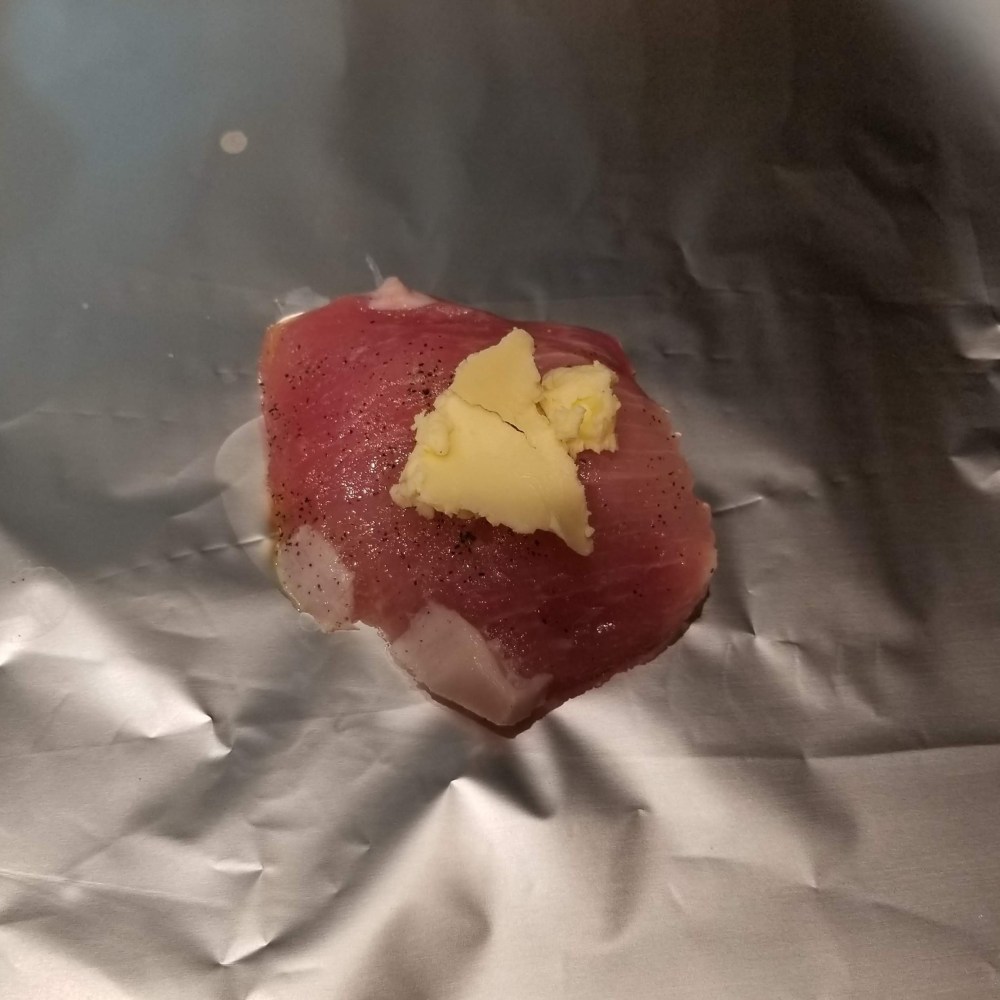 - Put another 1/2 Tbsp of butter on top of the chop.