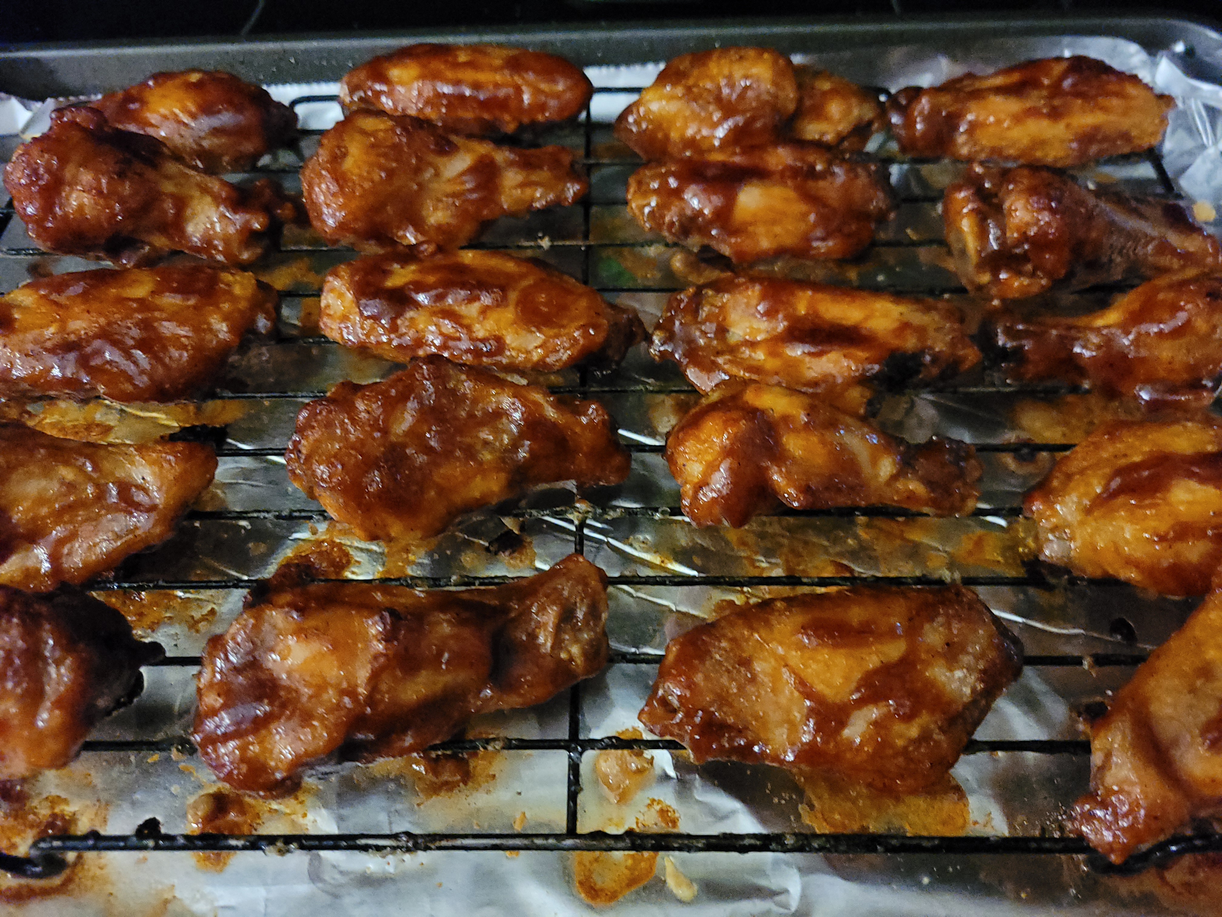 - Pour BBQ sauce into a medium bowl, use tongs to gently toss the wing pieces in BBQ sauce a few at a time and place back onto the wire rack. Don’t over sauce them.